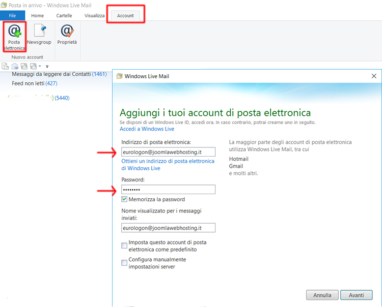 Riportiamo di seguito le indicazioni generali per la configurazione delle caselle di posta dei nostri piani hosting sul noto client di posta Windows Live Mail.