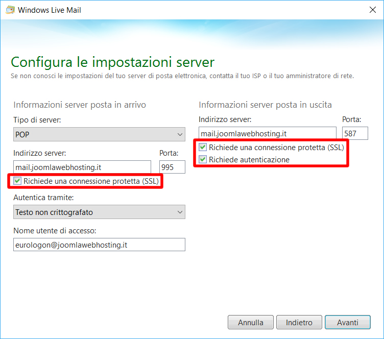 Tutti i servizi IMAPs, POP3s e SMTPs richiedono l'autenticazione